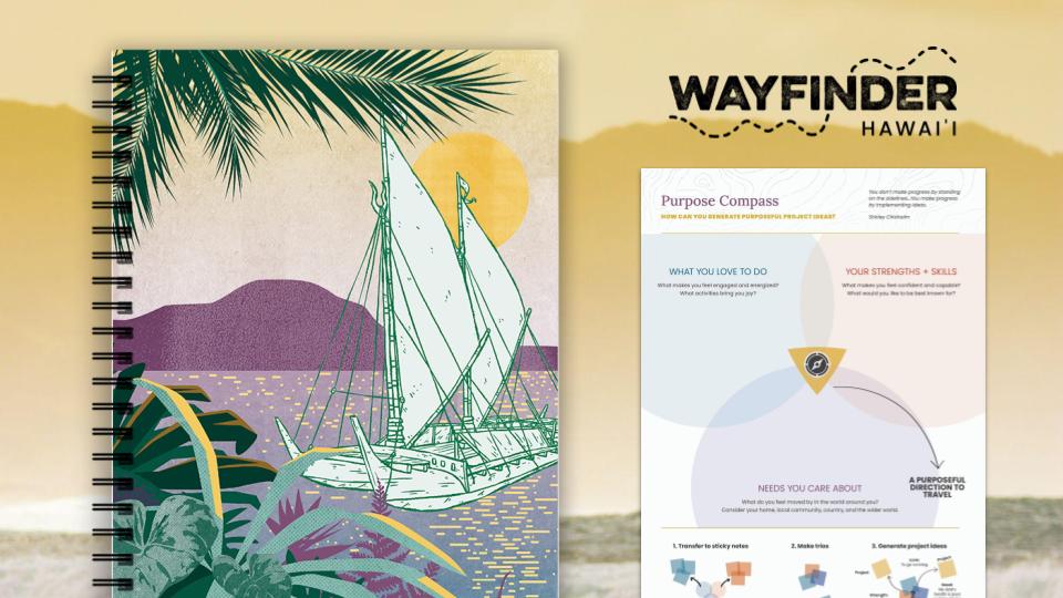 Since our beginning, EI has been dedicated to helping young people to find their passion and purpose, rooted in the wisdom of Hawaiʻi and all the communities we may call home, with the hope that education might be an environment for putting young people at the center of navigating our communities to a better destination. Much of our inspiration in this work has come from our time spent as educators and voyagers with Hōkūleʻa and Polynesian Voyaging Society, and the art, science, and metaphor of Polynesian wayfinding that can help to unlock the navigator within each person. A decade ago when we worked for PVS, our team met with the founders of Wayfinder, who were developing a curriculum to help support young people to navigate their lives after high school with purpose. Wayfinder has matured into a nationally-renowned platform and program built upon a framework of purpose-based learning, which equips students and educators with the tools to navigate life’s complexities, build meaningful relationships, and grow into resilient, purpose-driven people. Wayfinder is committed to partner with educators to guide students through meaningful learning experiences that help them build belonging, purpose, and future-ready skills to help them succeed in school and life.
